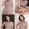 • Neckline: Contrast high neck with elegant ornamental detail